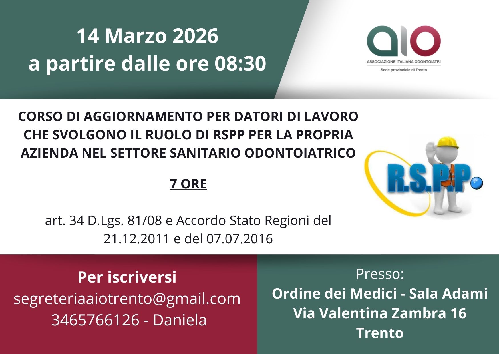 Per iscrizioni scrivere a Daniela segreteriaaiotrento@gmail.com