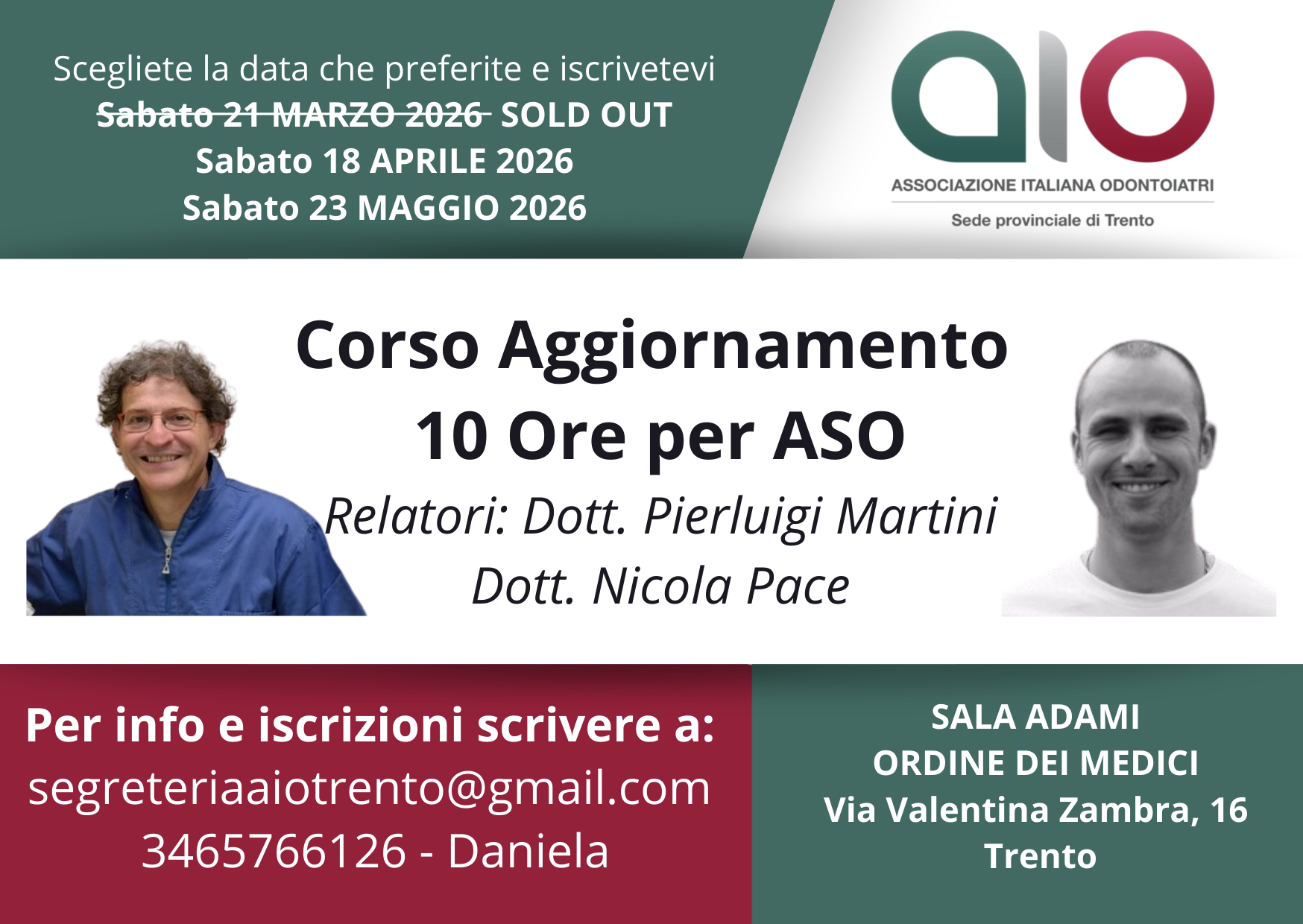 Per iscrizioni scrivere a Daniela segreteriaaiotrento@gmail.com